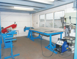 Der Raum ist ausgestattet mit Maschinen für kleine Metallbau- und Schlosserarbeiten: